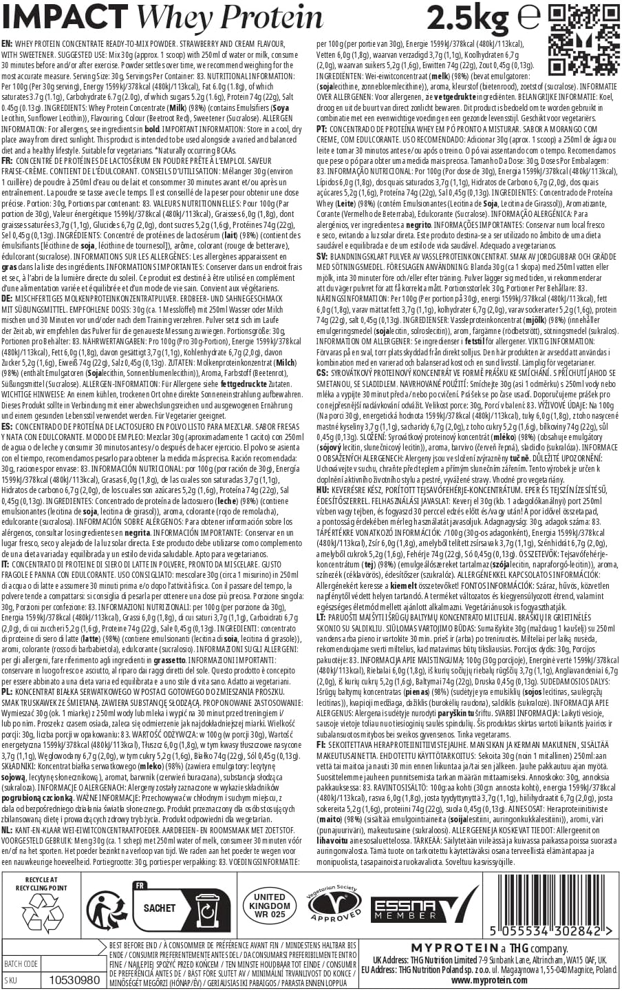 Myprotein Impact Whey Protein 2.5kg - Officially Certified Grade A